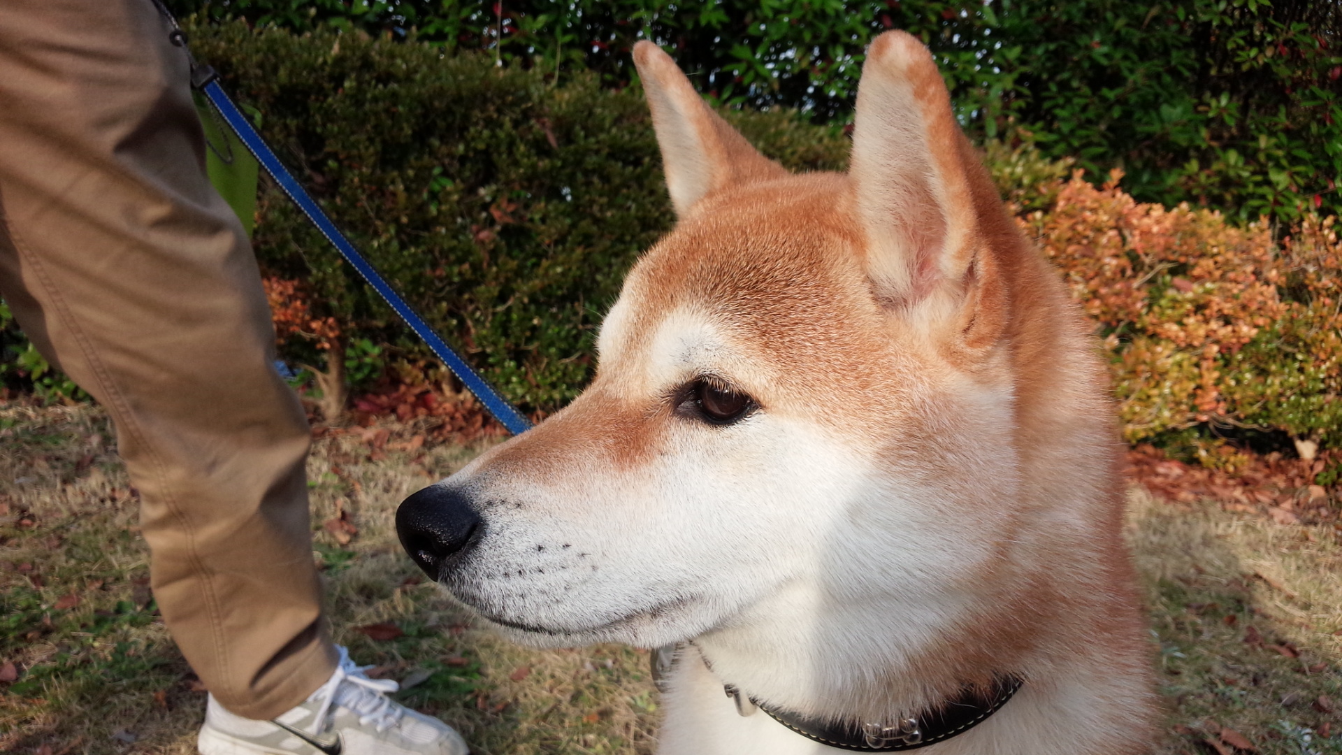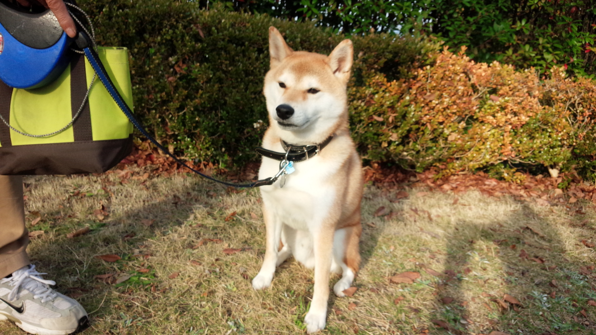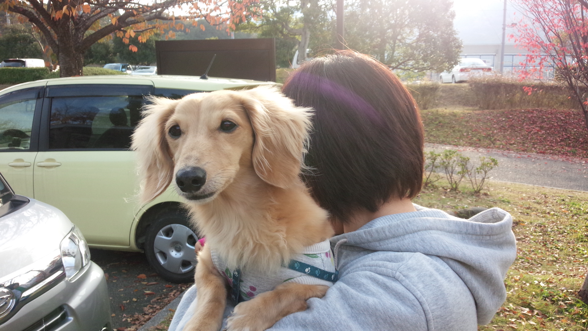 紅葉の公園を散歩中。