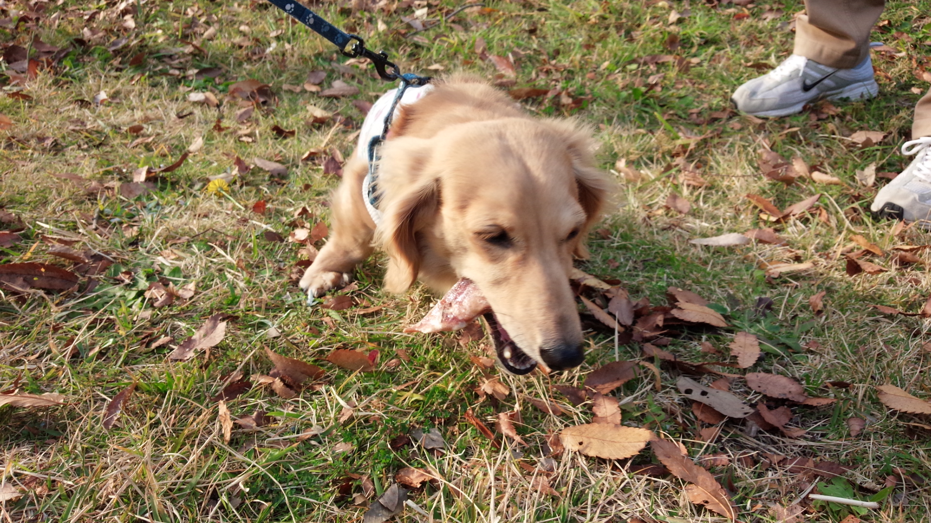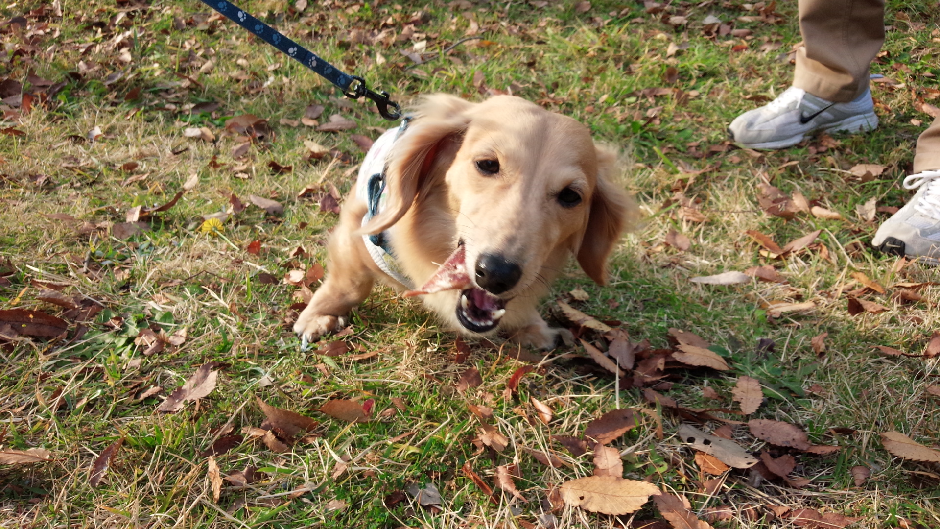 落ち葉を食べてるかと思いきや(*^_^*)葉っぱによく似たおやつでした( ´∀`)。